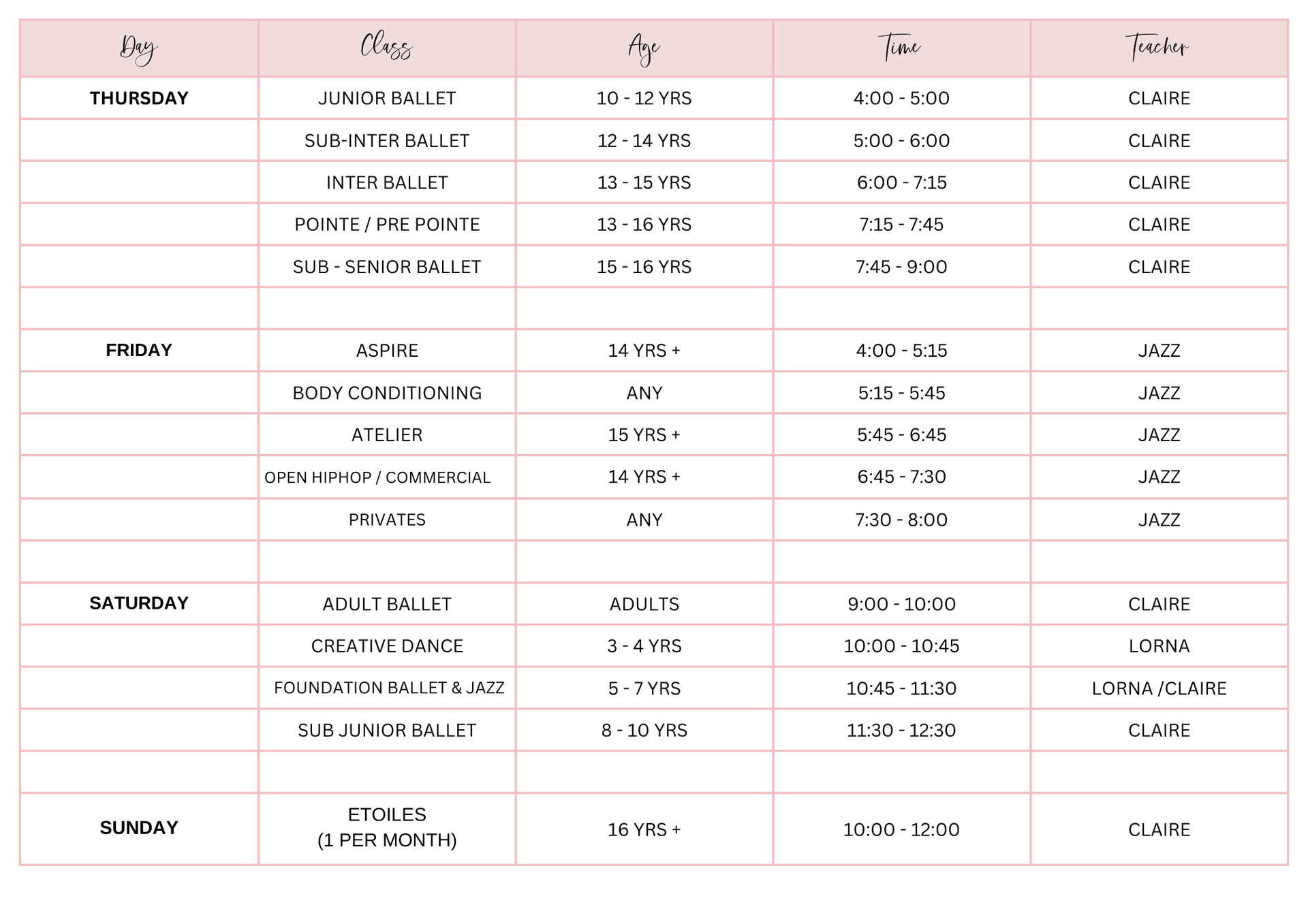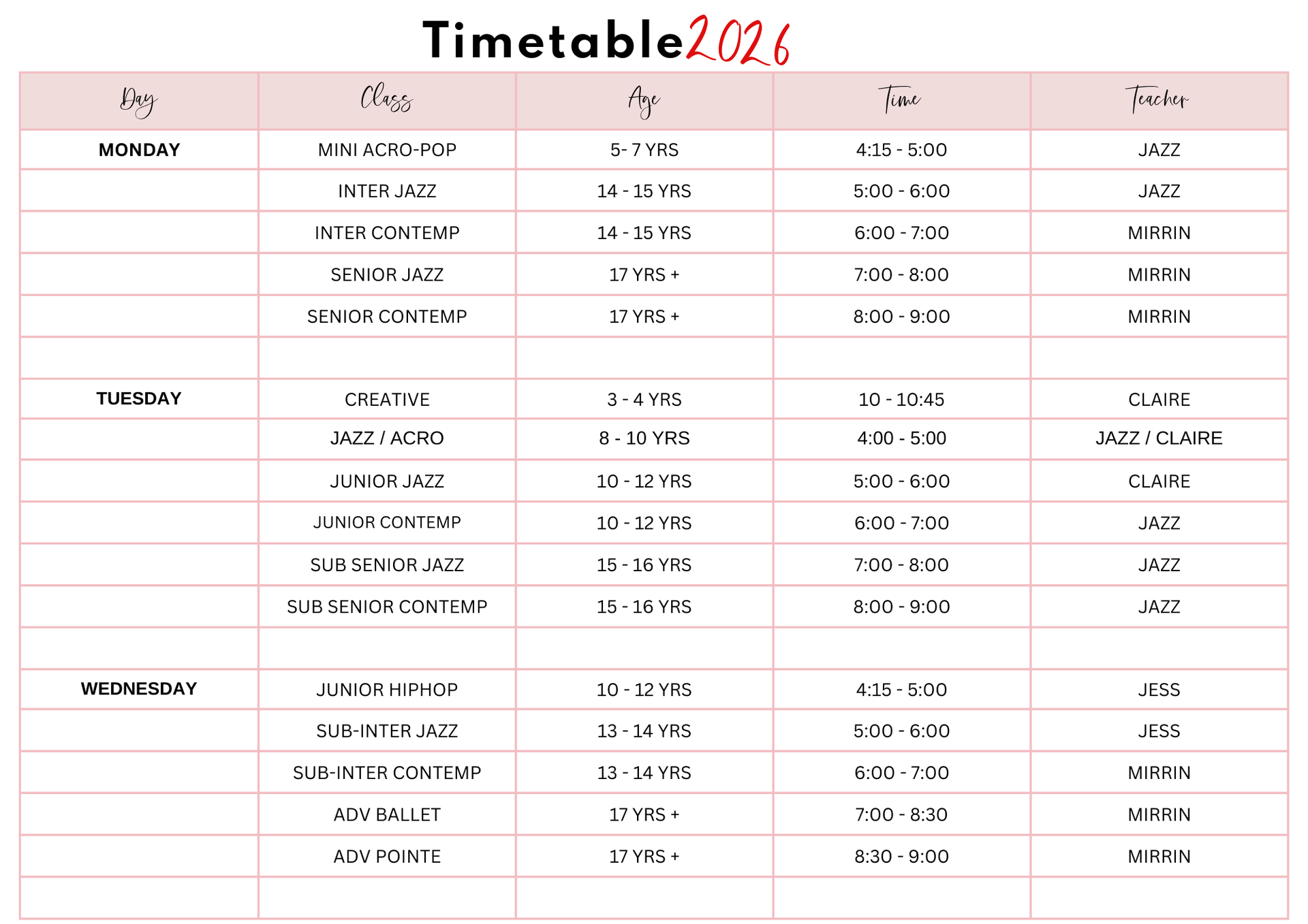 We understand life can get hectic, so we've designed a 2025 timetable with you in mind. Offering convenient sessions during evenings throughout the week, Dance Division ensures you and your family can easily fit dance classes into your schedule. Plan ahead and secure your dance fix with ease. If you have any questions or concerns about our scheduling, feel free to reach out; we're here to assist you in every way.